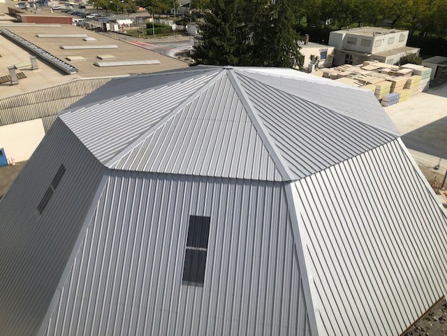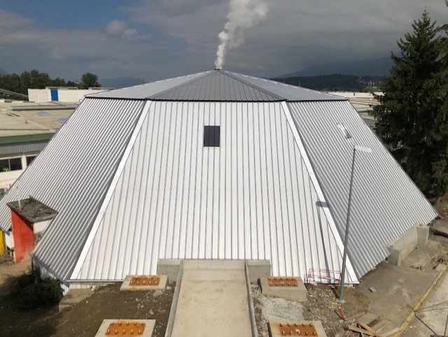 Il s’agit d’un bâtiment en structure métallique recouvert aujourd’hui d’un revêtement en fibrociment. L’objectif du projet est de procéder au désamiantage du bâtiment puis de réaliser des travaux de couverture en bardage simple peau. Sur deux faces de l’édifice seront créées deux ouvertures couvertes permettant le déchargement des camions et le recyclage dans le cirque. Ces deux auvents seront couverts et clos par un bardage simple peau avec revêtement intérieur anti-condensation ainsi qu’une porte automatique à rideau en face avant pour garantir l’étanchéité. La structure de chaque auvent sera intégrée à la structure métallique existante de l’édifice.